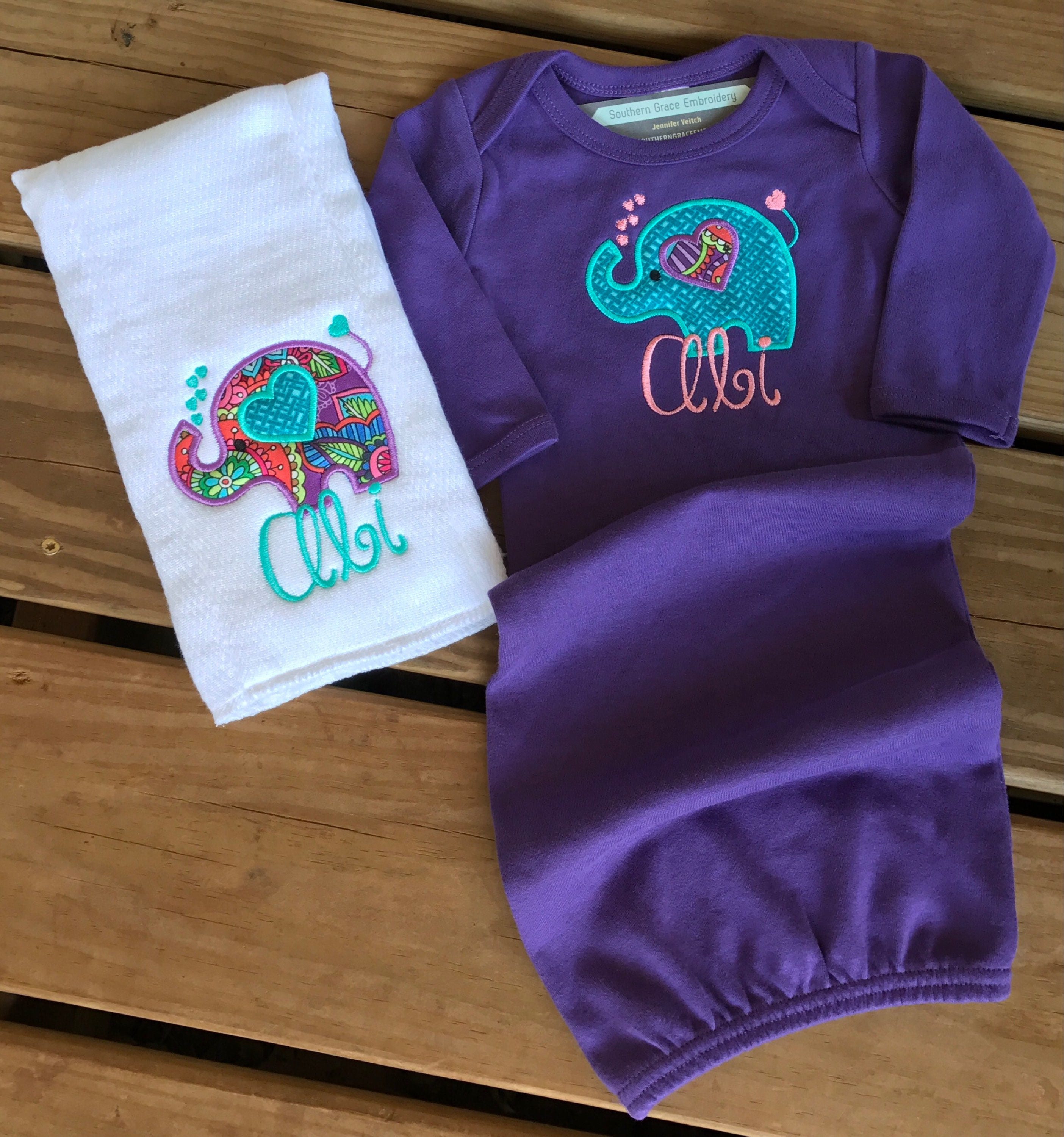 Elephant Baby One Piece Or Gown And Burp Diaper Monogrammed Etsy