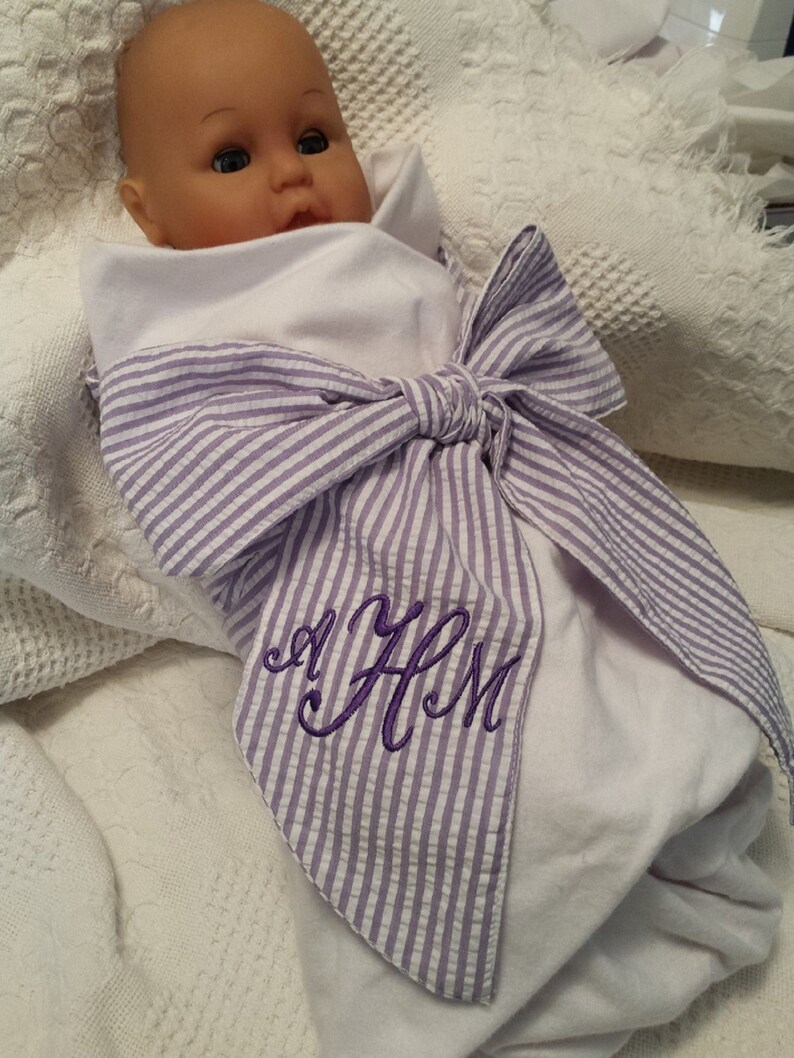 Monogrammed Swaddle Bow Blanket 2 Pc Set Best Baby Shower Etsy