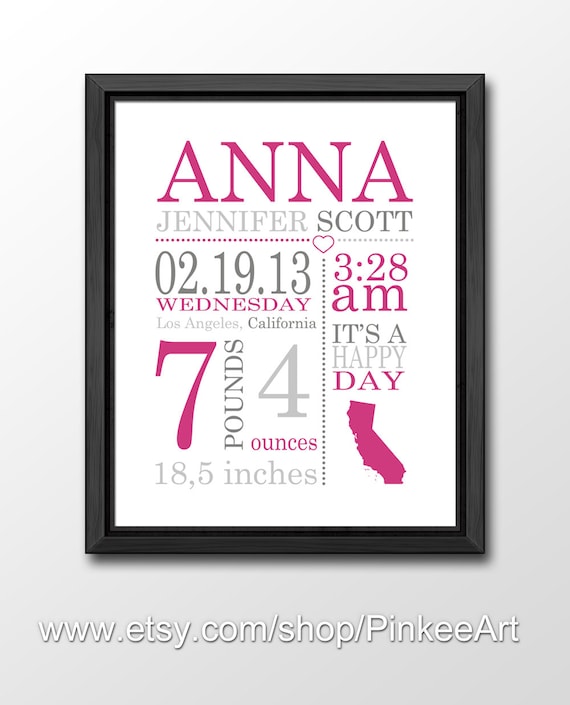 Best Baby Girl Gift Birth Stats For Girls Baby Wall Art Etsy