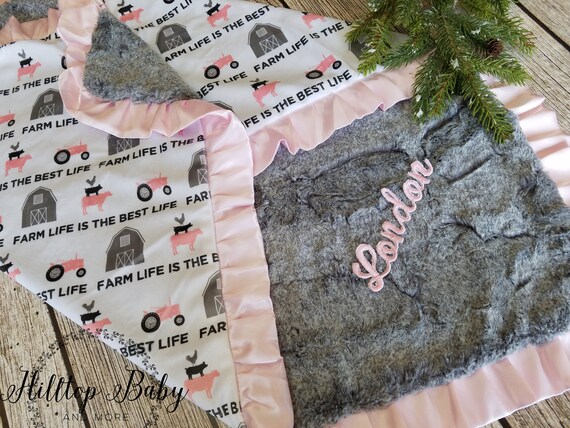 Personalized Baby Gifts Pink Farm Cow Baby Girl Minky Etsy