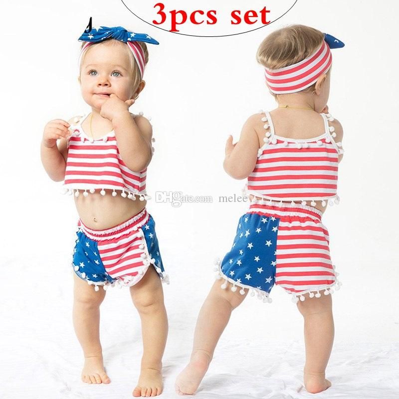 2020 America Girls Clothes Sets 4th Of July Red Blue Strips